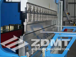 本系列液壓折彎機是雙缸上動式的數(shù)控液壓折彎機,它通過伺服比例閥上的各類閥門動作來驅動左右油缸的伸長與返回,從而帶動滑塊的上升與下降。滑塊的同步采用全閉環(huán)電液伺服控制技術,滑塊位置信號由兩側光柵尺反饋給數(shù)控系統(tǒng),再由數(shù)控系統(tǒng)控制同步閥的開口大小,自動調節(jié)油缸進油量的多少,從而控制滑塊(Y1、Y2)軸的同步運行,始終保持對工作臺的平行狀態(tài)。